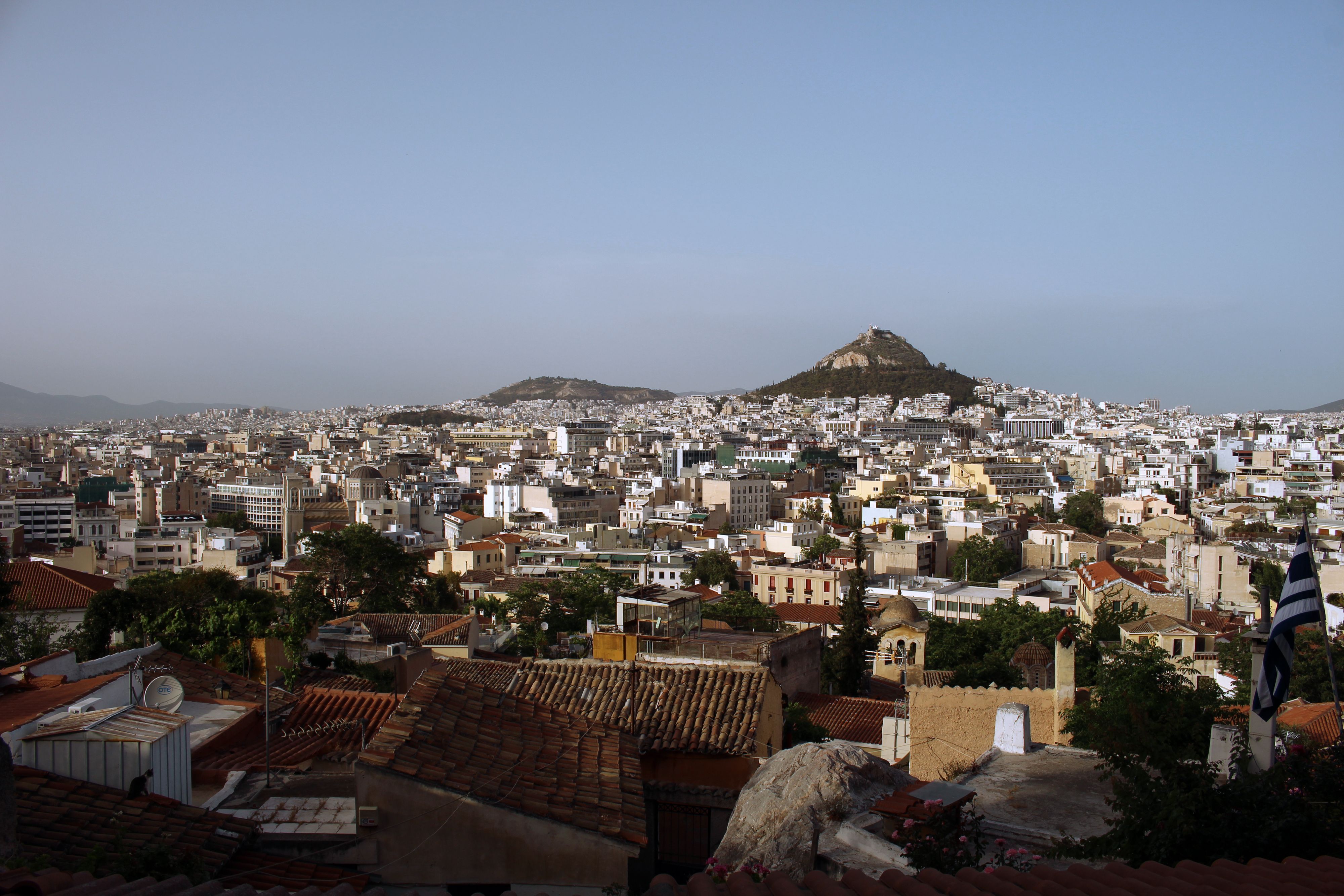 Geht man von hier noch ein kleines Stück weiter nach Westen, bietet sich linkerhand entlang der Straße Aiolou ein erster hervorragender Blick auf die Akropolis, die sich majestätisch hinter den Häusern der Plaka, der griechischen Altstadt, erhebt.