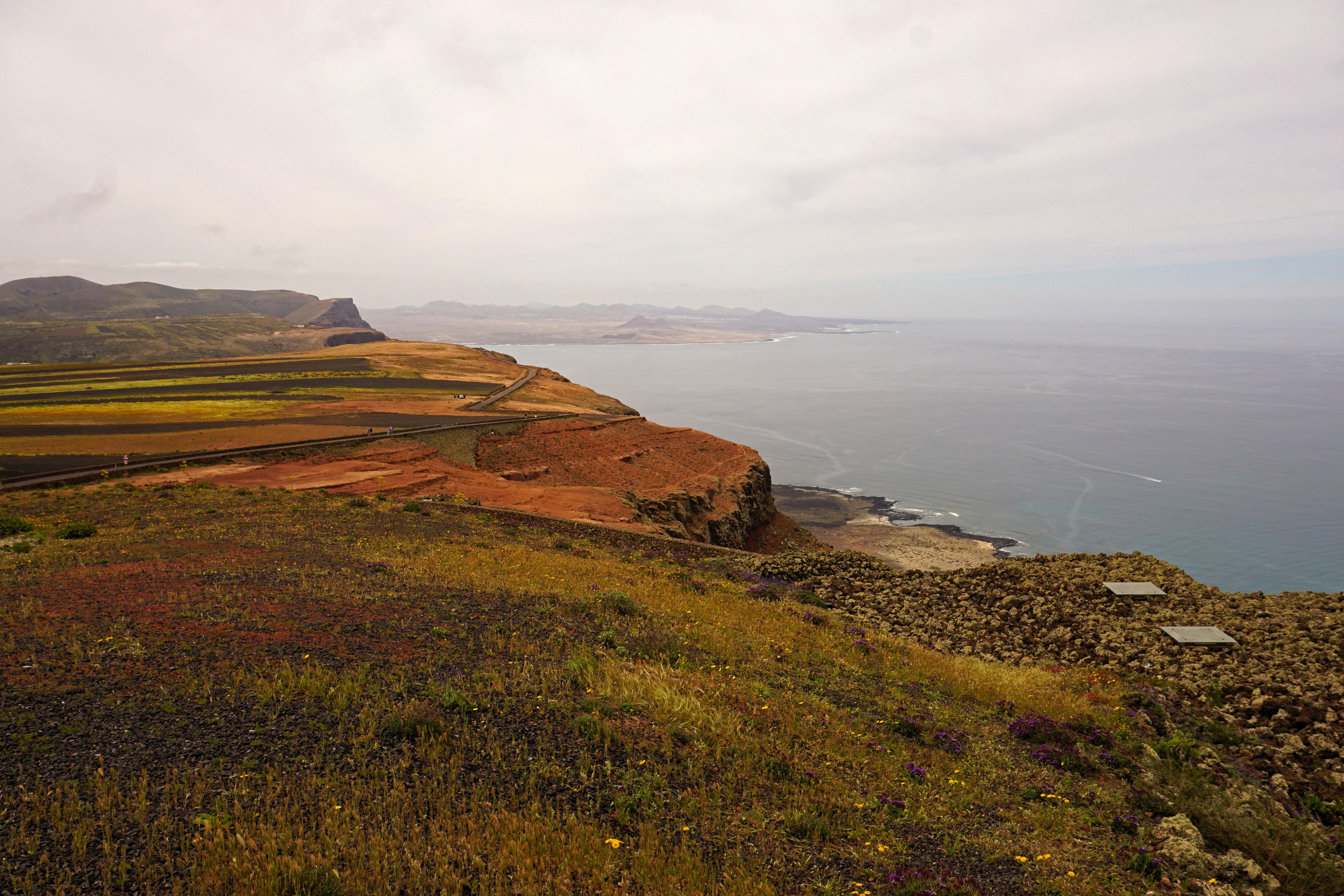 Bei der Ortschaft Ye erreichen wir wieder die asphaltierte Straße und beginnen gleich mal eine nicht im GR 131 inkludierte Extratour. Da wir schon sehr nah dran sind, wollen wir gleich jetzt den Mirador del Rio besichtigen. Die 2 zusätzlichen Kilometer pro Richtung nehmen wir dafür gerne in Kauf. Wir gehen also wieder Richtung Norden und erreichen nach einiger Zeit den Aussichtspunkt am letzten Zipfel der Insel.